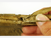 As you can see, the slips are laced through the cover and knotted together and this seems typical of the sort of improvised structure that takes us on from the simple long stitch but it is still someway from what we might expect from a professional binder.