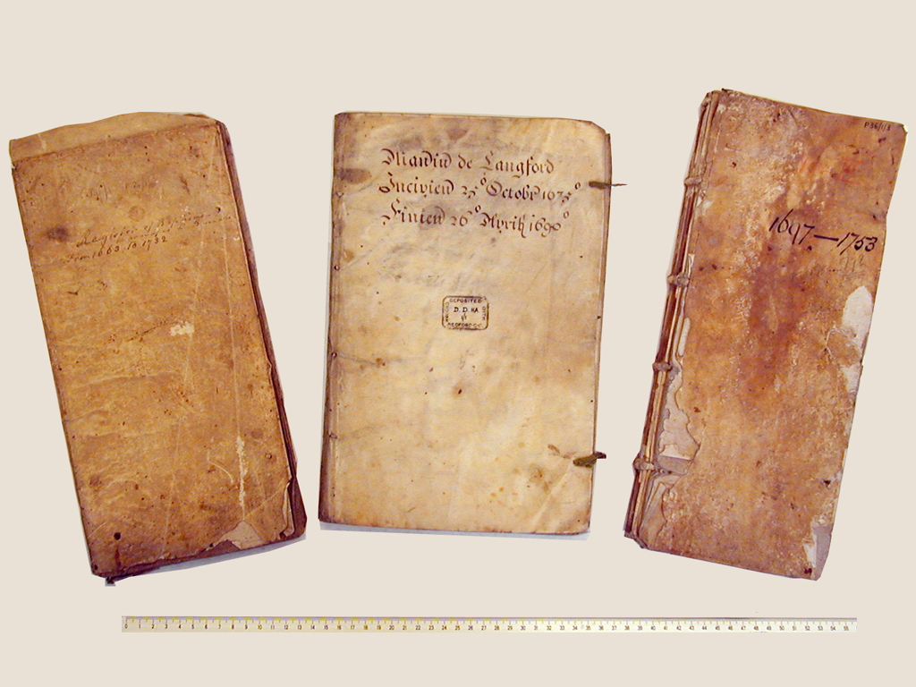 But parishes needed books other than registers for their churchwarden’s accounts, overseers of the poor accounts, etc. and these continued to be in the vellum tradition with slips through the cover rather than the board.