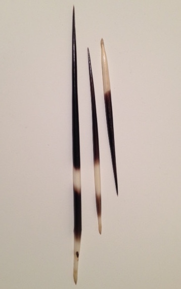 I found these quills in friends’ gardens, as the porcupine sheds quills easily – especially when dogs and other nosey animals come too close. I think they’re beautiful – all stripy and each one different.