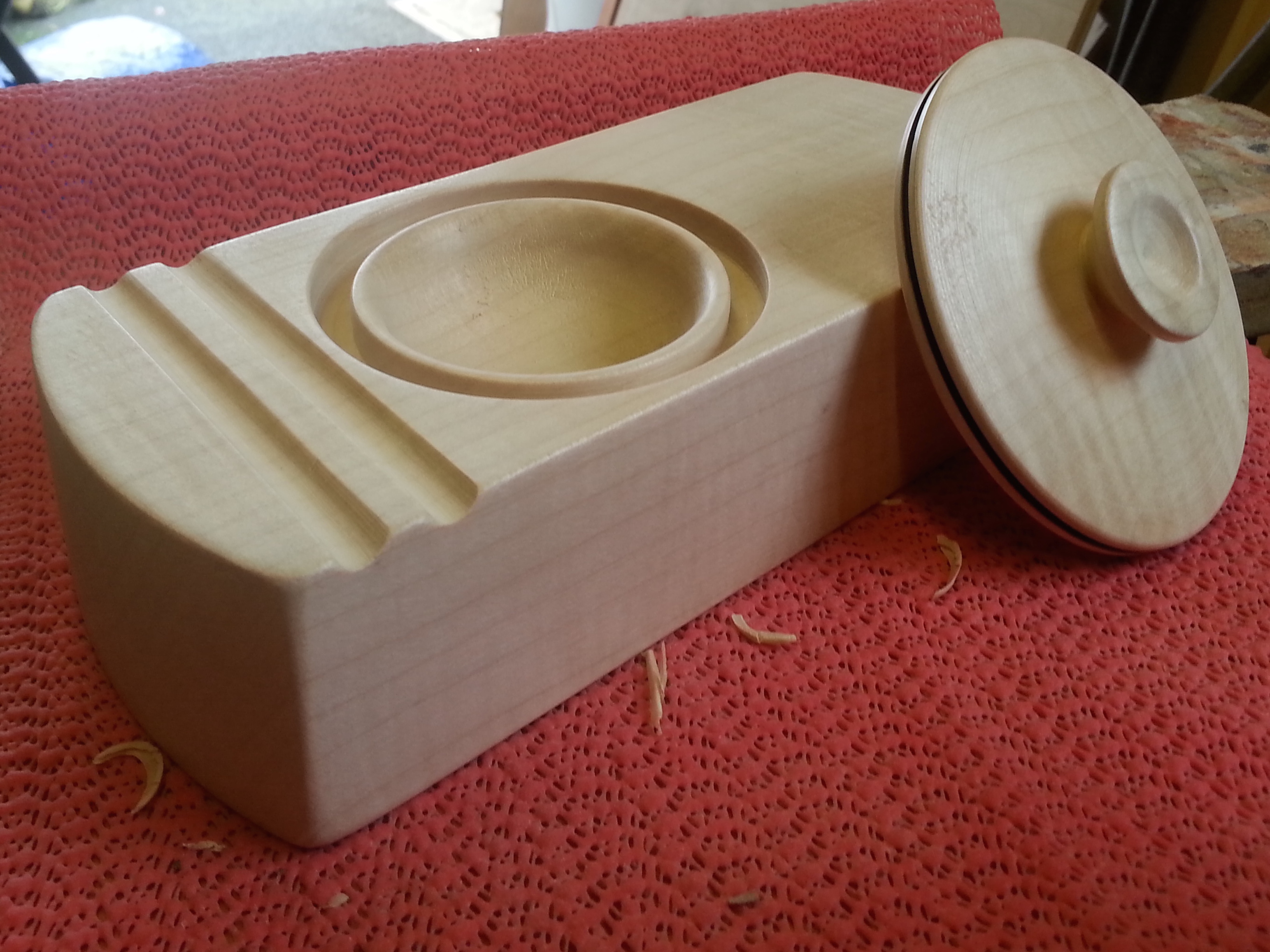 I decided to use Welsh sycamore as it is a very stable wood unlikely to contaminate the paste. I made it rectangular in form to give it stability on the table, and added a groove to hold a brush or other tool.