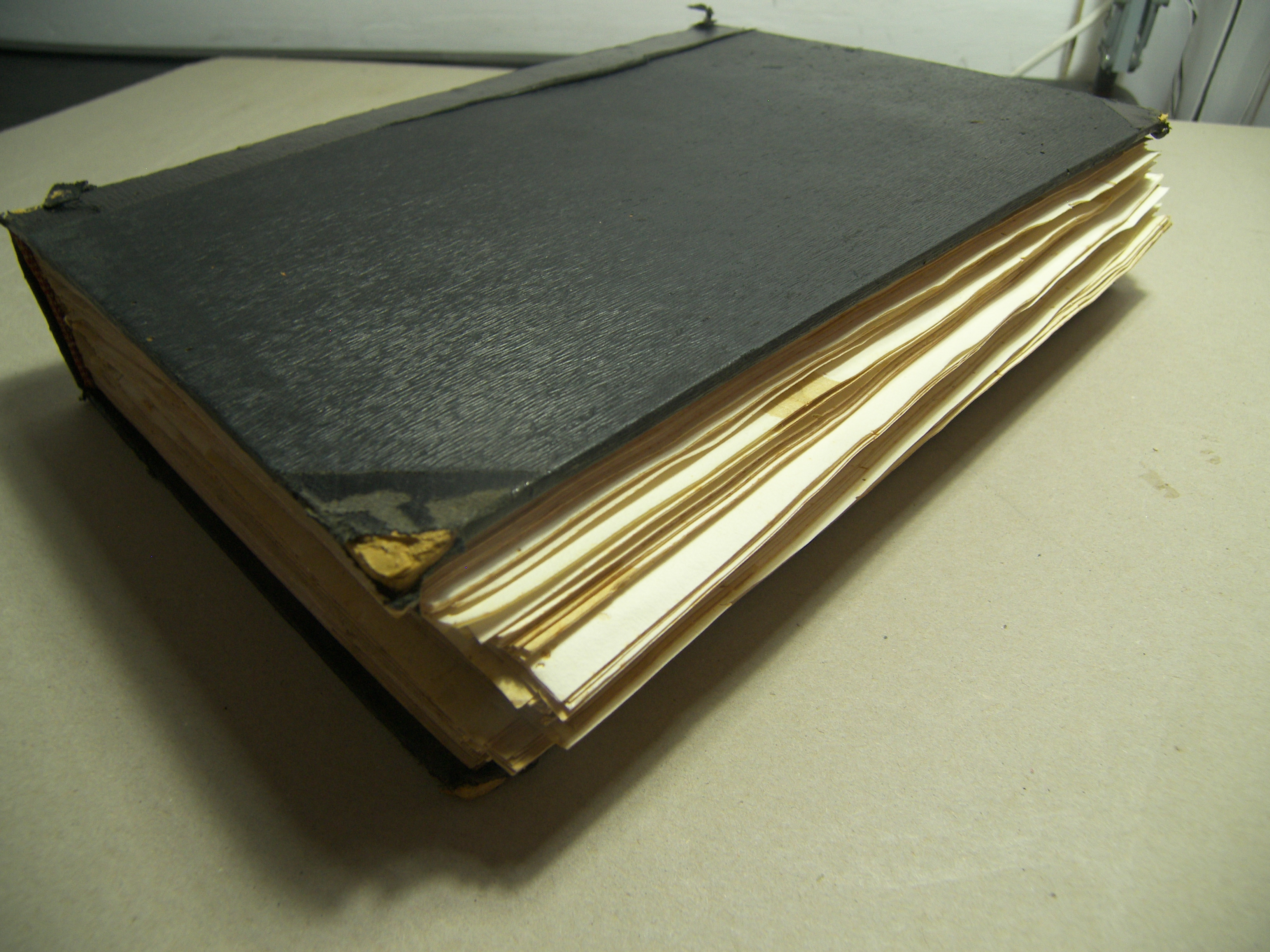 The tape adhesive and old thread were removed with methyl cellulose and the very careful use of a scalpel, taking care not to damage the fibres of the paper substrate. Paper repairs were done using Japanese paper: 100% Kozo Tengujo 9gsm for tears and consolidation, and Kitikata for losses.