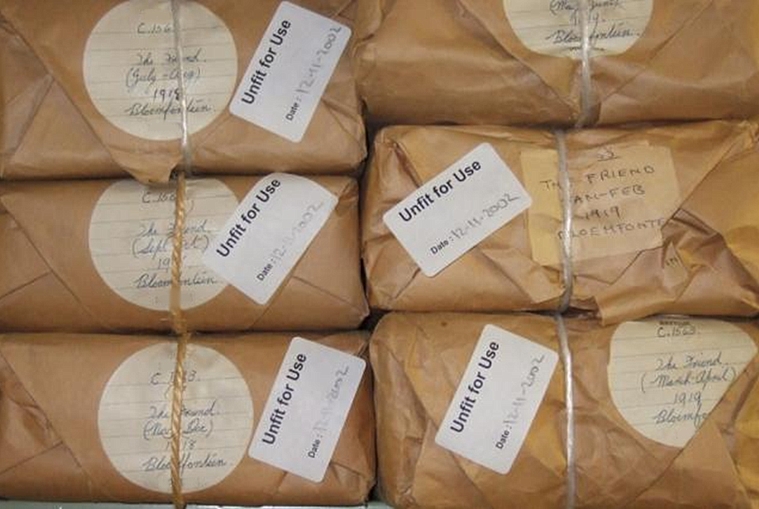 The degree of polymerisation (DP) of historic paper was shown to significantly affect the rate of accumulation of wear and tear. While at DP > 800, the accumulation process is random, a function was developed for documents with DP between 300 and 800. For objects with DP < 300, one large missing piece (i.e. such that contains text) developed on average with each instance of handling, and this DP value was defined as a threshold value for safe handling.