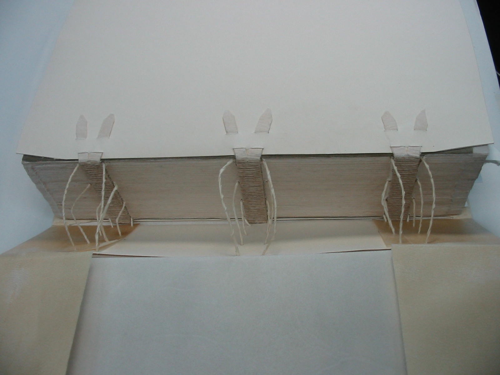 [vii] The term ‘blocks’ describes here the spine tacket reinforcements, which are cut flush with the shoulder of the binding, as opposed to overbands, which extend onto the sides.