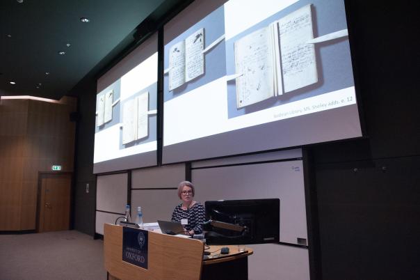 Nicole Gilroy, Head of Book Conservation at the Bodleian Libraries, presenting her conservation approach for Percy Bysshe Shelley’s manuscript notebook (MS. Shelley adds. e. 12)