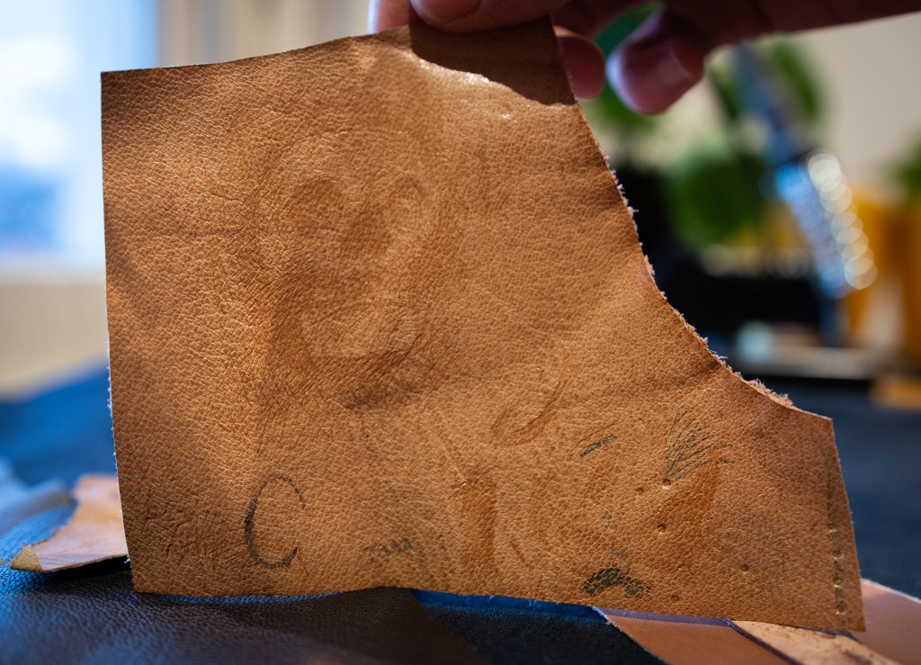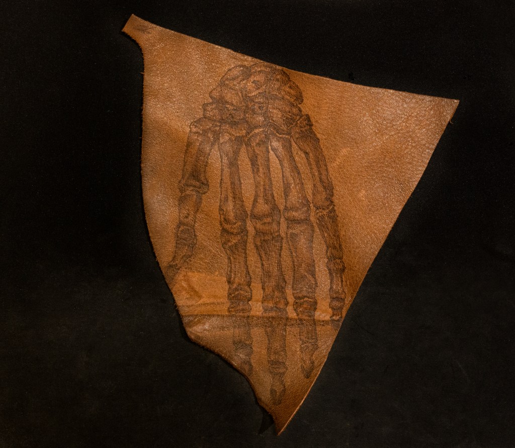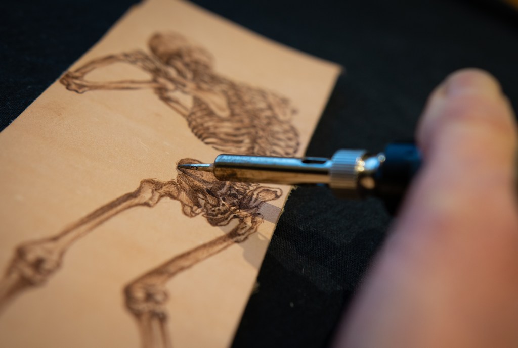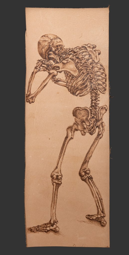Having figured out a way to draw lines on the leather, my concern was now that these might somehow disappear, but so far all have remained visible. The idea for the future is to use this technique to decorate leather items – wallets, jackets, belts, (books?). Ultimately, this was just a fun experiment without much useful application in improving the daily life of a conservator, but the soldering iron is still one of my favourite tools!
