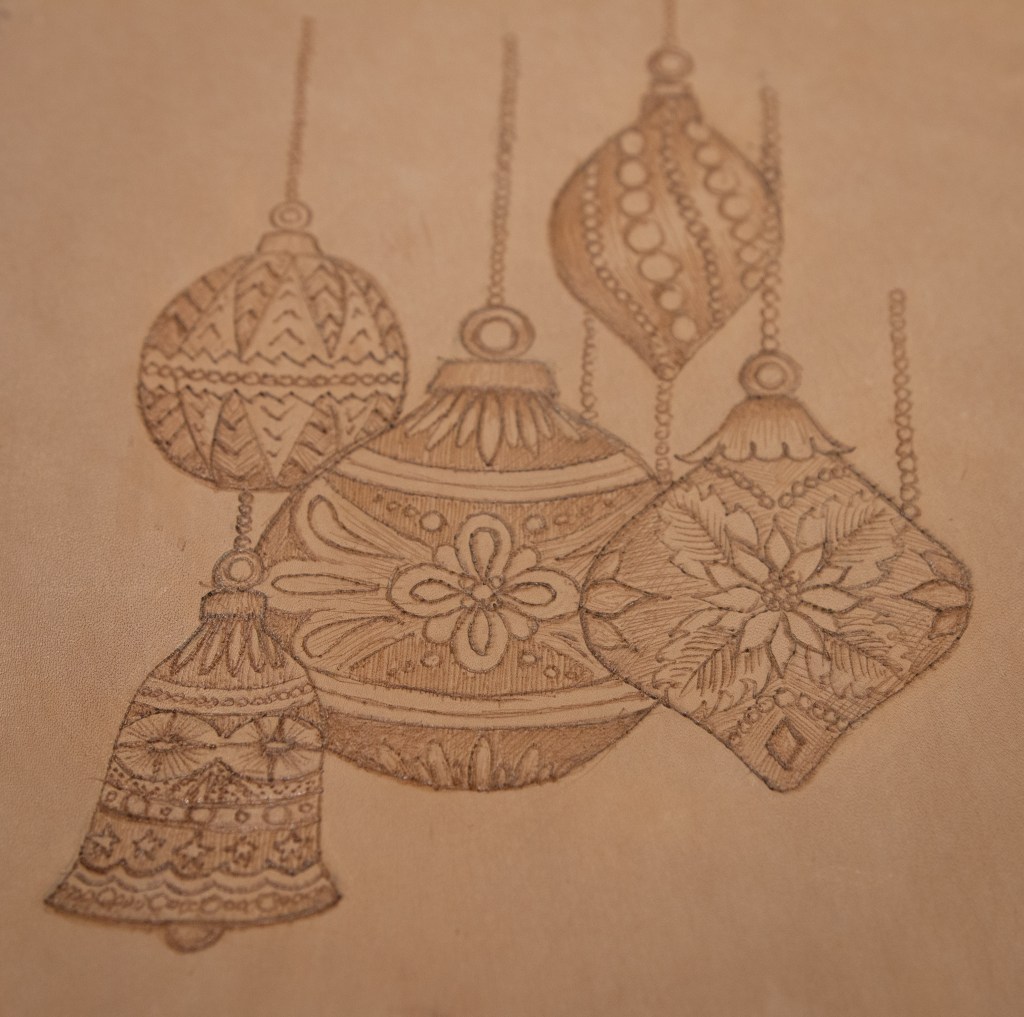 I also remembered that when blind tooling, the leather can be dampened before the application of the hot irons, and thought this might also have an effect on the lines from the soldering iron. I sprayed some of the leather offcuts lightly with water to see if this would also affect the types of lines created, allowing me to achieve better results on pieces that had previously not received the marks well.