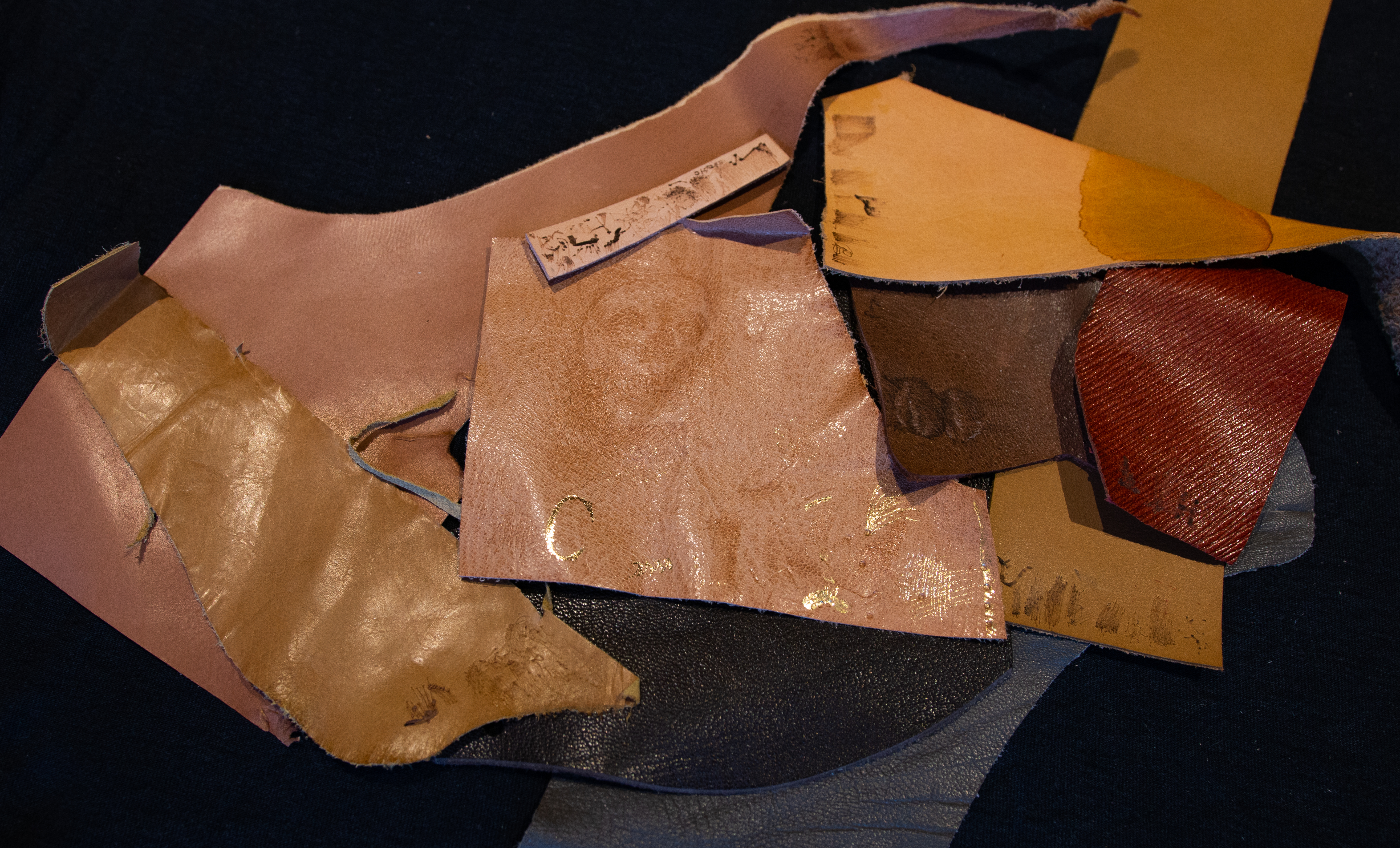 Continuing my experiments, I found the best temperature settings and the best pressure and length for my marks to achieve different results on various types, colours and finishes of leather.