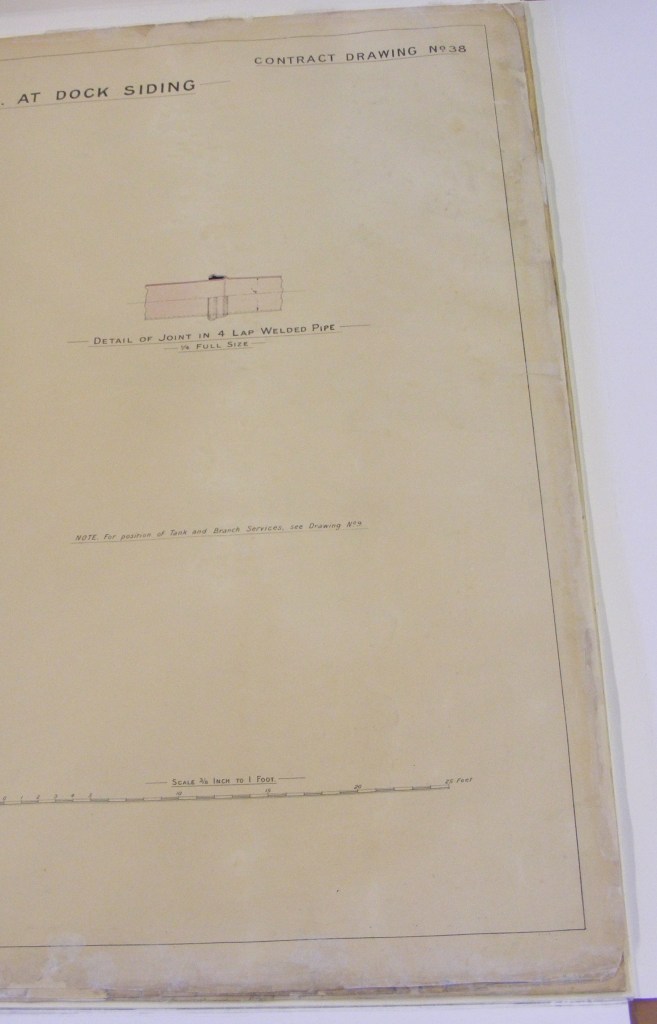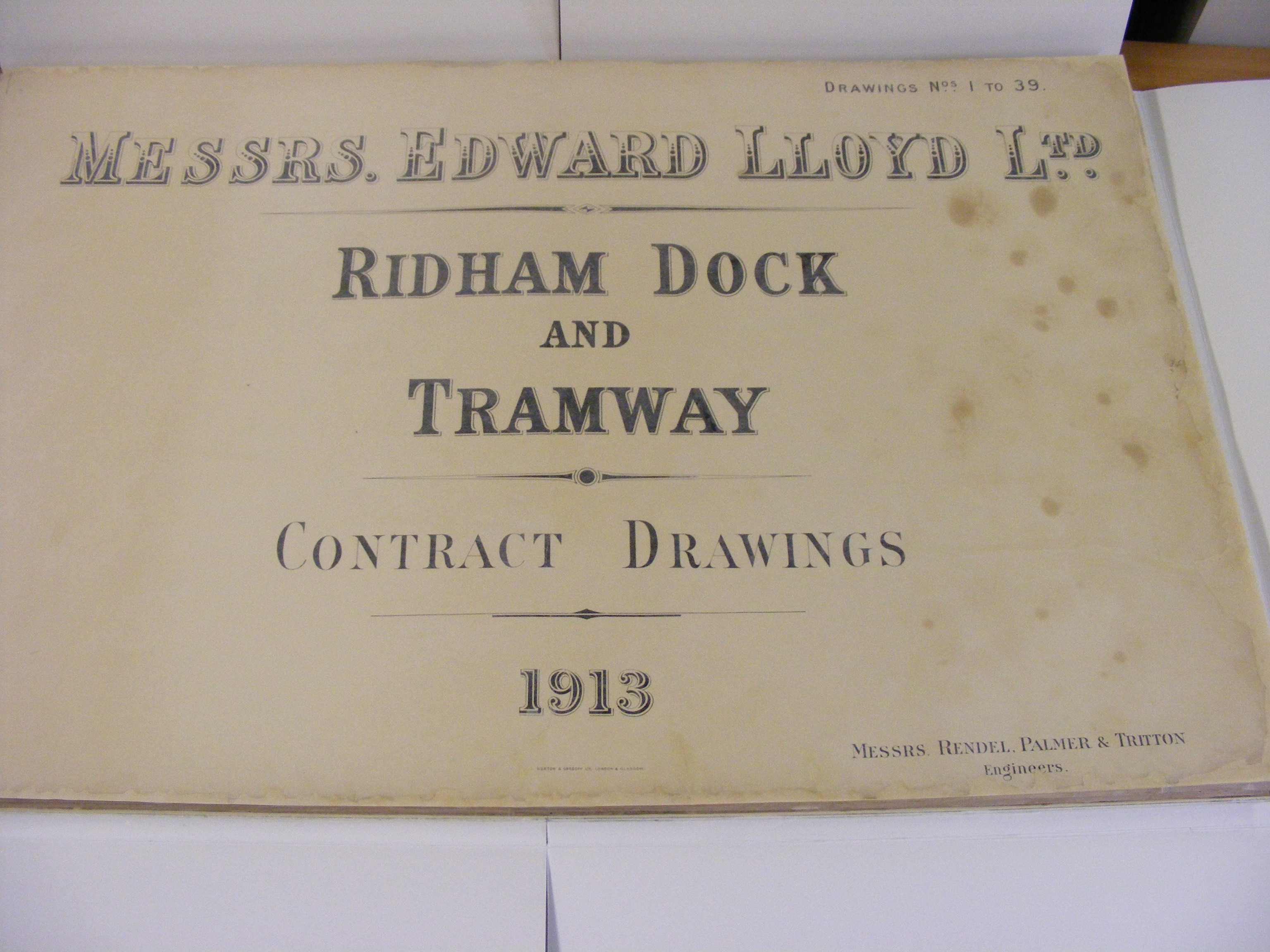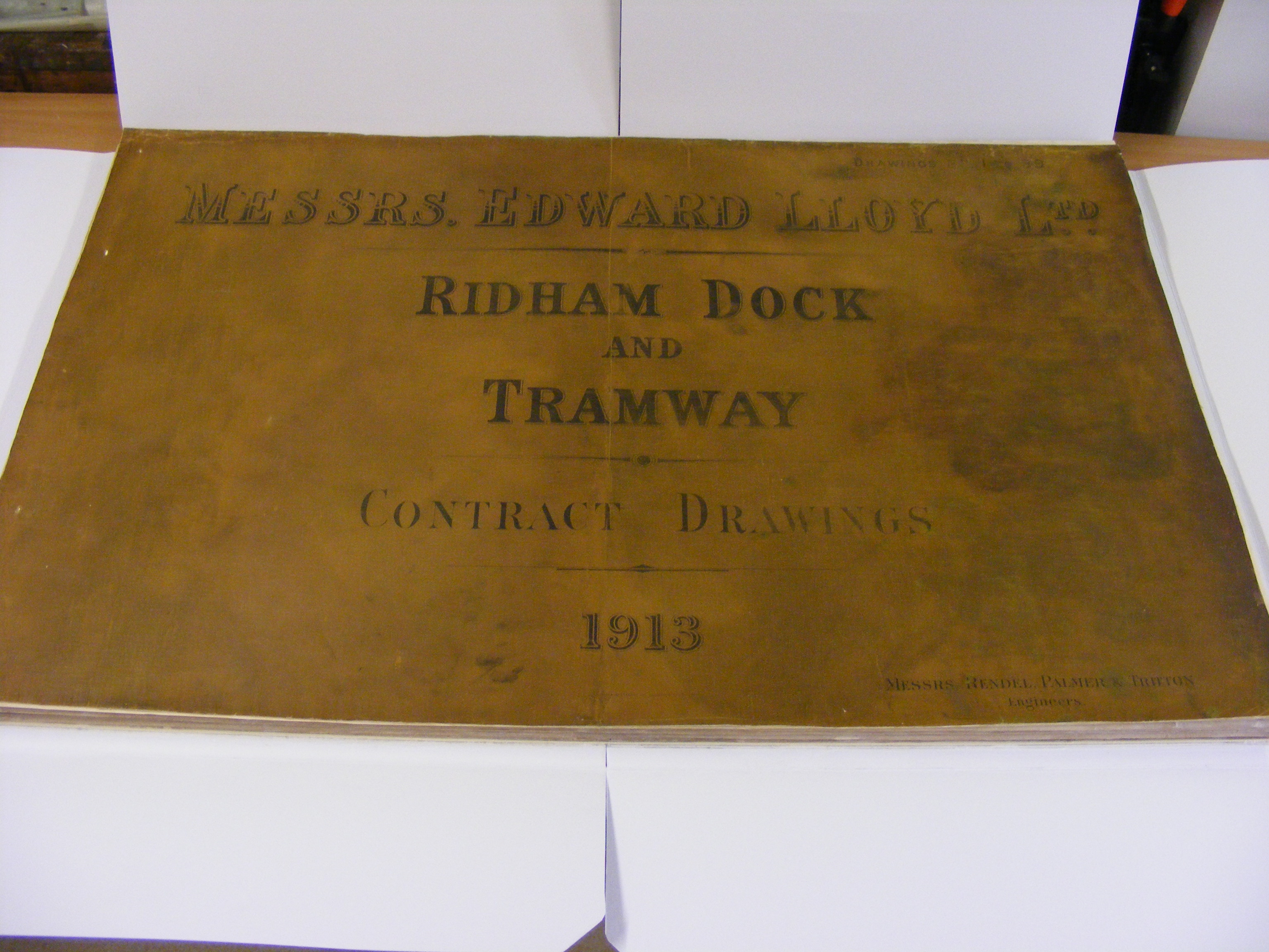 The unique 1913 Ridham Dock and Tramway Contract Drawings book holds the original set of architectural plans for the Kemsley Paper Mill railway viaduct. This narrow-gauge railway was used to transport both paper and workmen between the paper mill and the docks. For a while, the Kemsley Paper Mill was the largest producer of newsprint in the world.