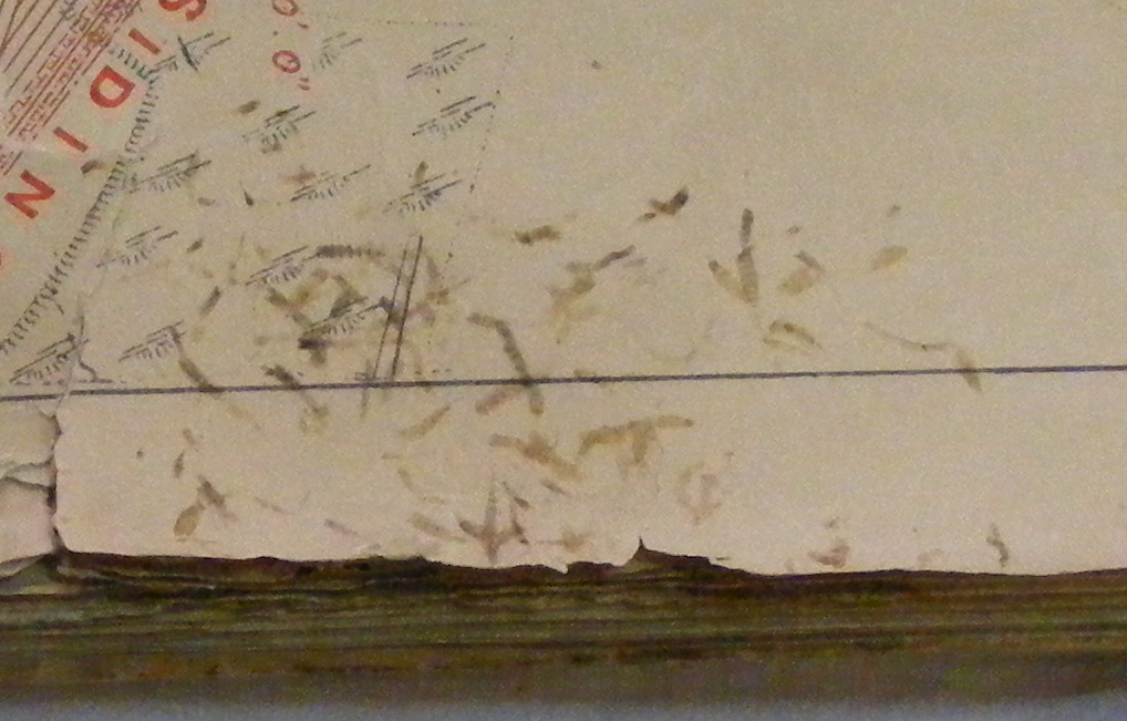 - Several plans had been stained by hundreds of squashed insect larvae, presumably from contact with rotting rubbish (Fig. 4).