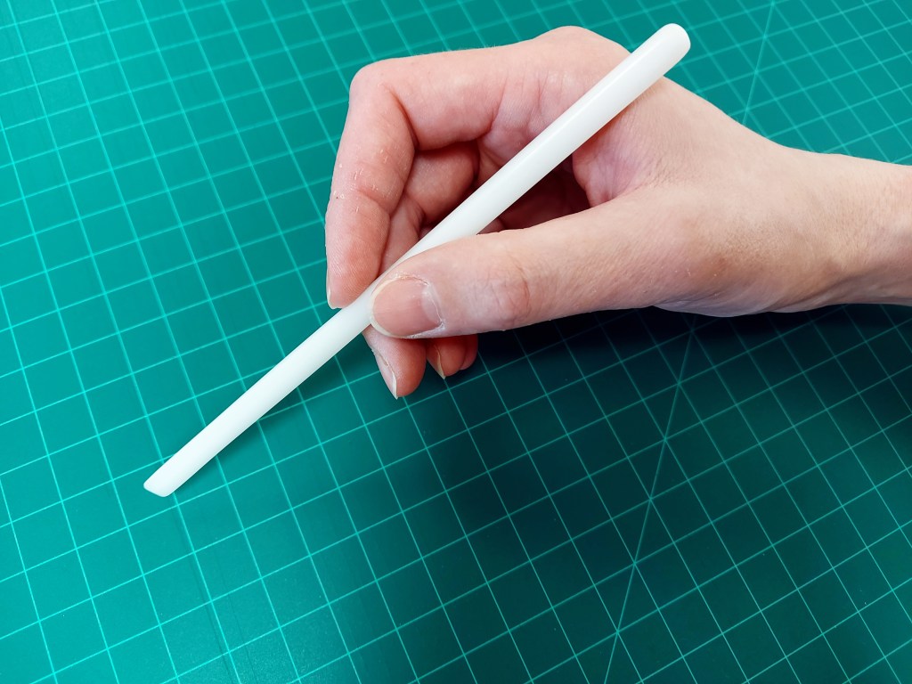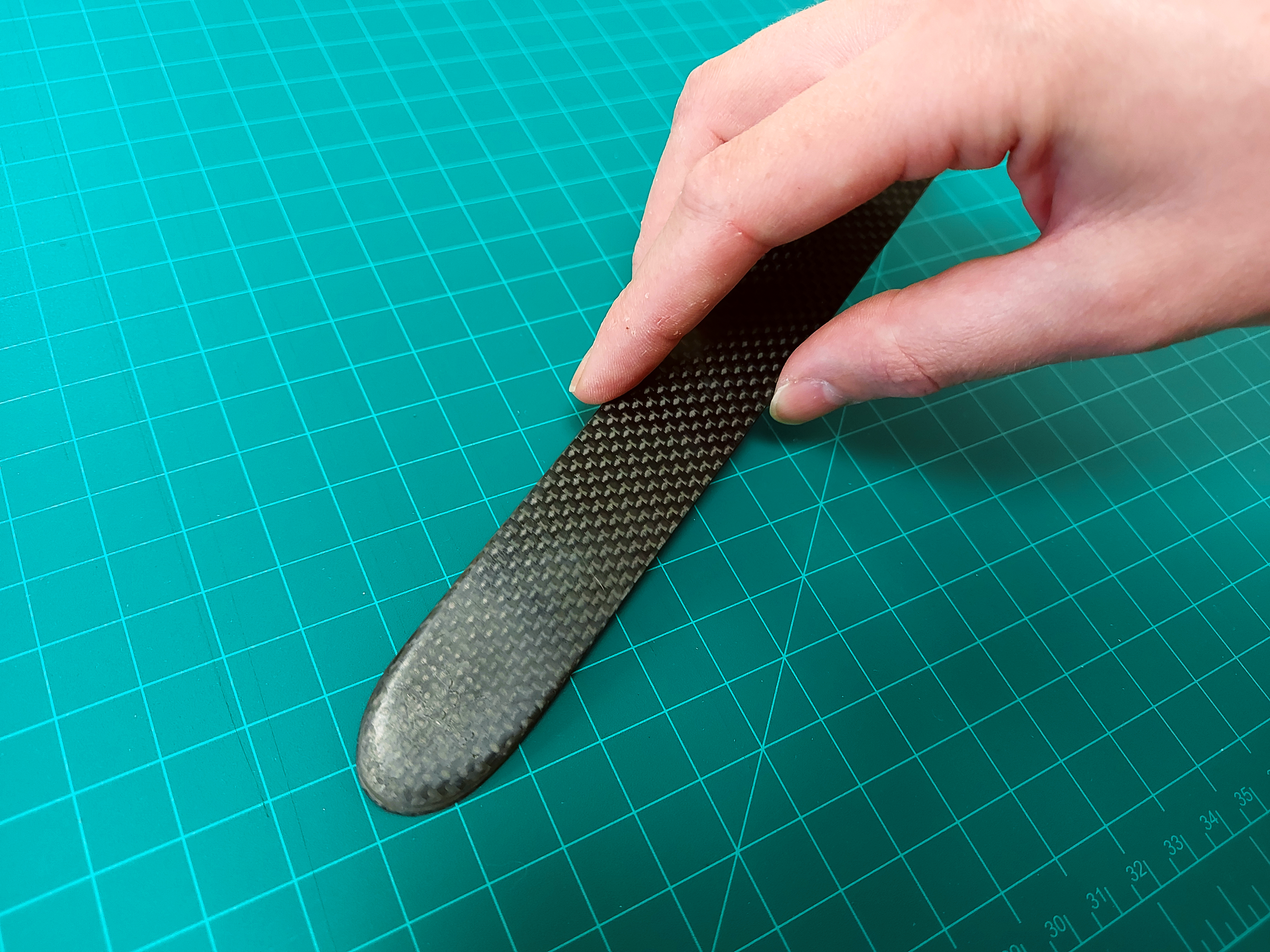 Years ago, I bought a couple of spatula-like tools from Jeff’s online store. I’ve used them nearly every day since, and they’re definitely among my favourites. They’re not just for bookbinders! The first of these is the carbon fibre lifter. It’s made from a composite material – a woven carbon fibre textile embedded in a sheet of synthetic resin. The tool is almost as thin and flexible as a metal spatula, but a lot more gentle, with a satisfying springy feel.