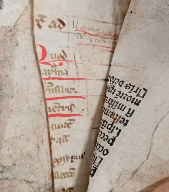 Fig. 6, 7 – Waste material in De secretis mulierum libellus [EPB/A/139/2]. Bought at Stevens Auction with two other items on 12/9/22. Lot 401. Photography by Alexandra Hill; courtesy of Wellcome Collection.