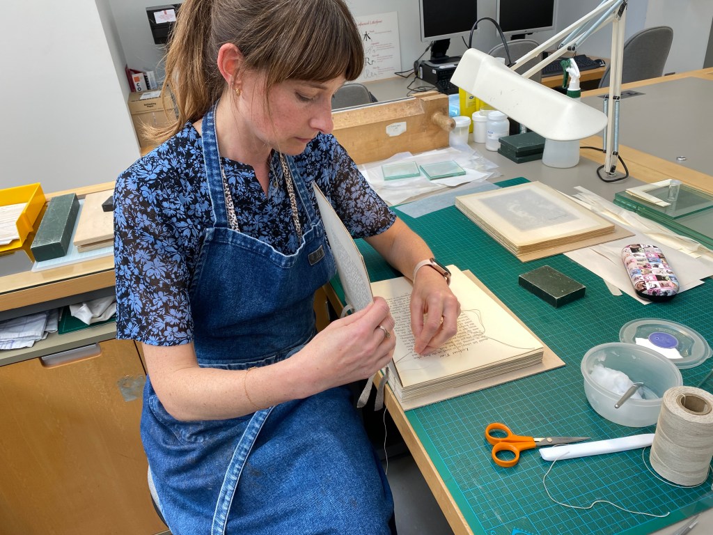 I studied at Camberwell c.2003 – first the postgraduate diploma course and then the MA in books. I still forget that it doesn’t exist anymore! I have worked at the British Library for 20 years – not something I set out to do, but here I still am. I started as a book conservator and now lead one of our conservation teams, which is very rewarding. I feel lucky to have had the best of both worlds – an academic degree and invaluable training from our binders when we were still based in the British Museum Bindery.