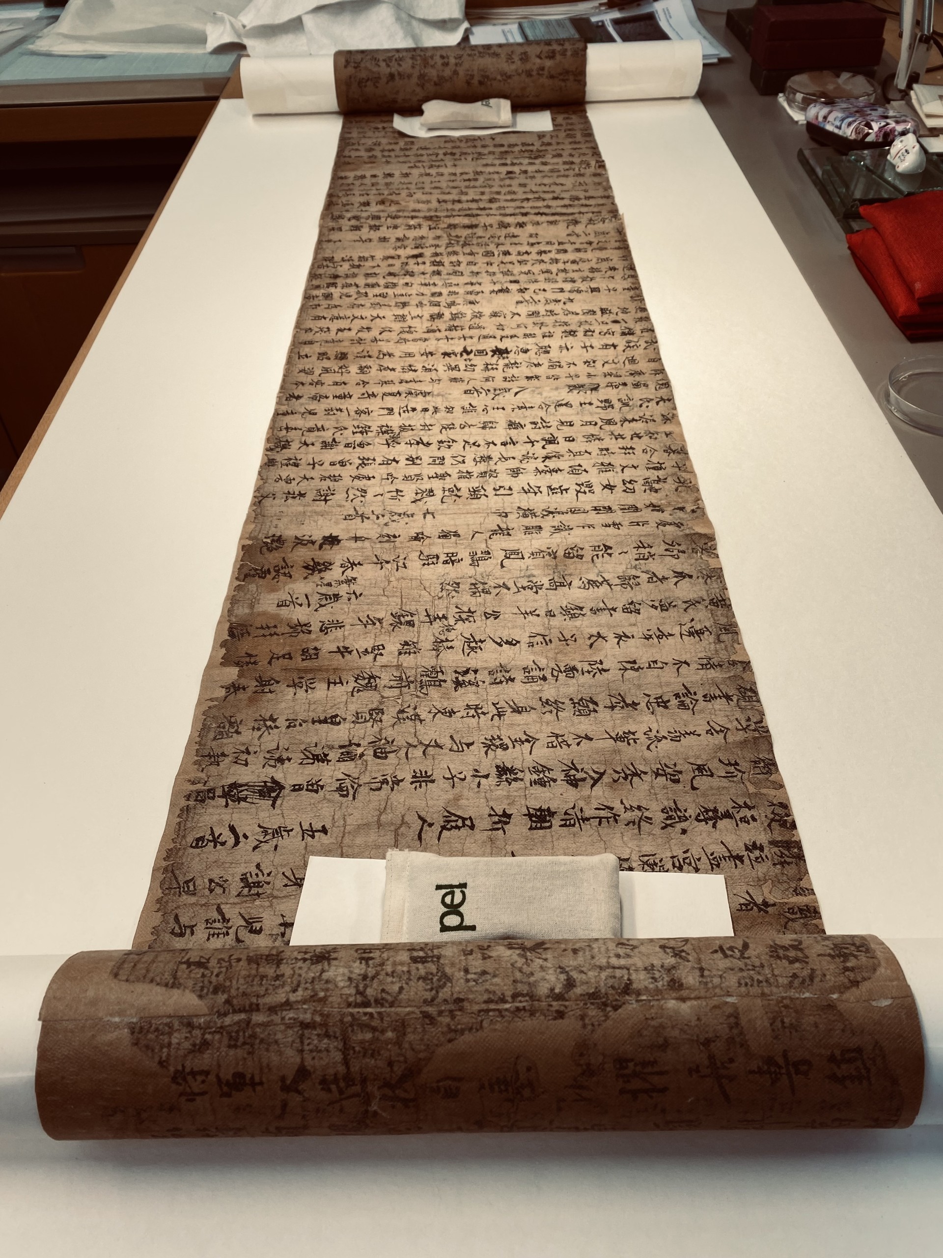 A scroll from the Dunhuang Collection. It was one of thousands found in Cave 17 in the Mogao Caves, carved into the mountains. Very humbling to be part of its history. You can find more information on this here.