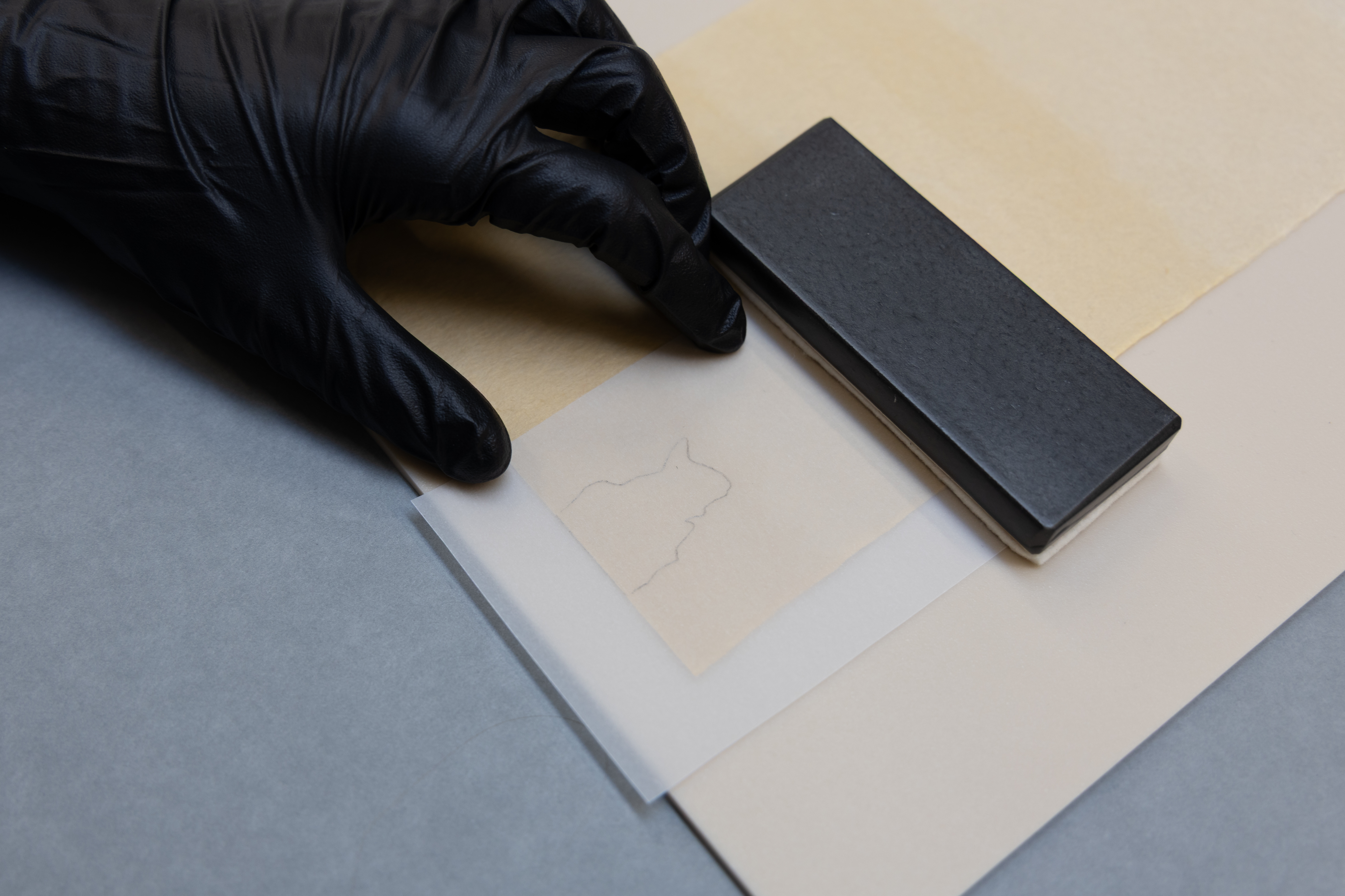Start by tracing the required form onto Mylar®/Melinex® or tracing paper directly from the artifact. Select a suitable infill paper.