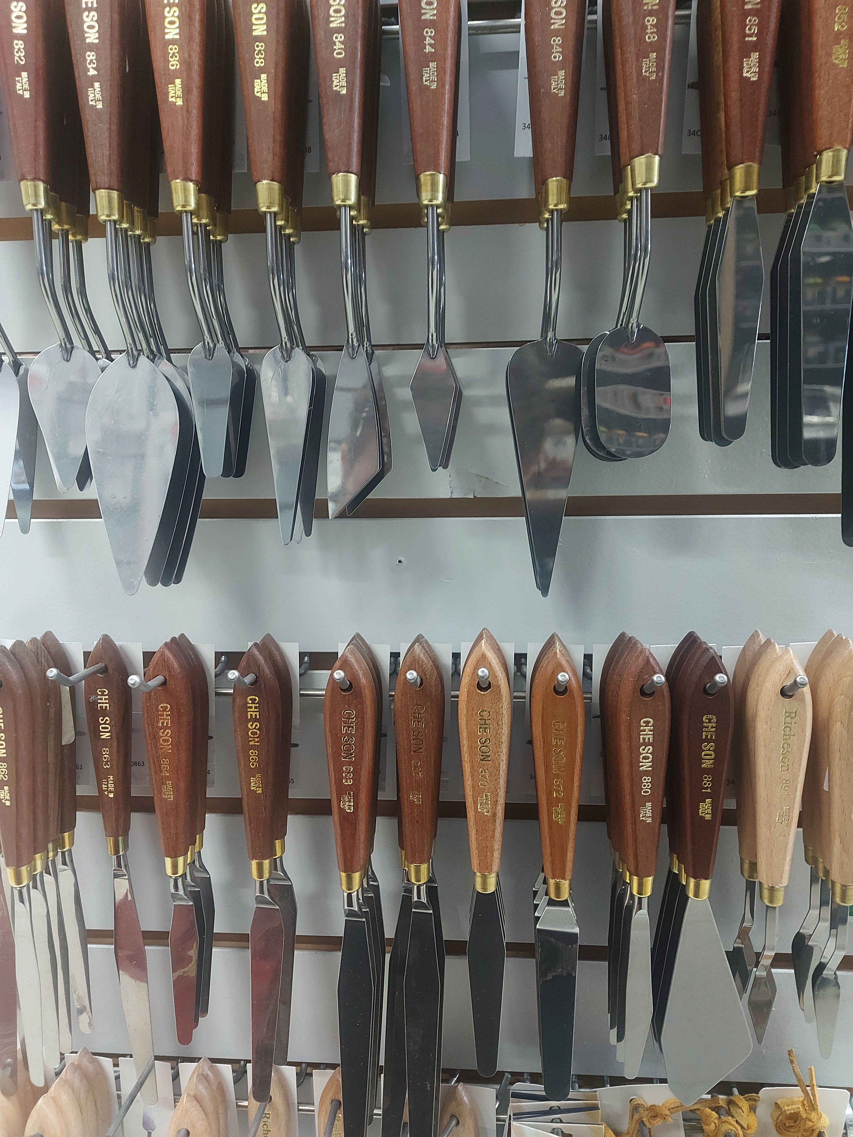 These modified palette knives are now my favourite tools for backing removal, tape removal, and just about anything that requires forcefully separating layers. They’ve held up very well, and even after two intense backing removal projects, they show no sign of wearing down. And with so many different blade shapes available, there’s huge potential to create custom tools for highly specific tasks. The only word of caution I have is to stay away from cheap or student-quality palette knives – I’ve found that they’re made from a different metal alloy and don’t have the same flexibility. Artist-quality knives have a lovely spring to them, very helpful for delicate work. Student-grade ones can be stiff and unwieldy.